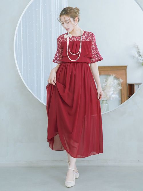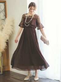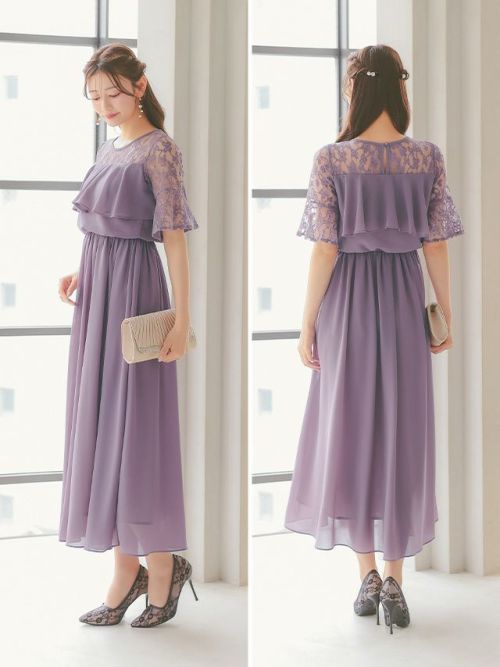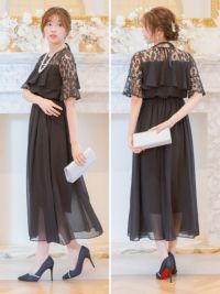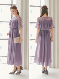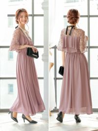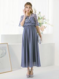 シフォン素材で女性らしさたっぷりなロング丈パーティードレス。