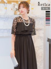 5. ラメレース袖ありフリルデザインロング丈パーティードレス (Sサイズ~4Lサイズ)