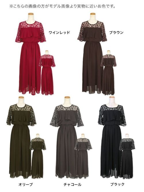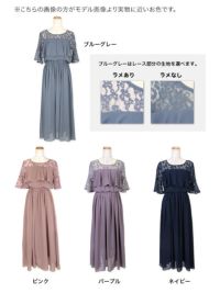 ラメレース袖ありフリルデザインロング丈パーティードレスのカラーバリエーション