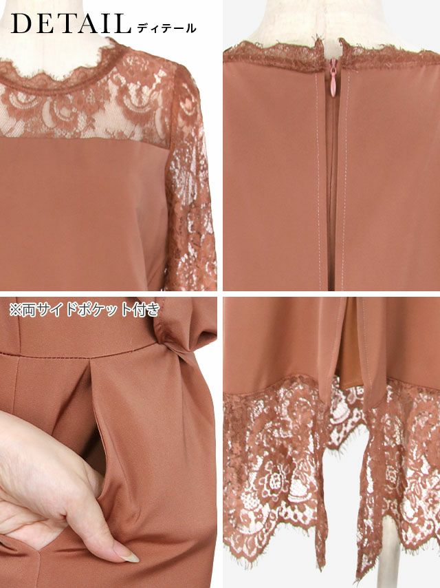 レーススリーブウエスト切替タックロングパーティードレスのカラーバリエーション