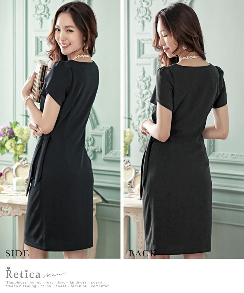 ウエストドレープリボンデザイン半袖ミディプチプラパーティードレスのカラーバリエーション