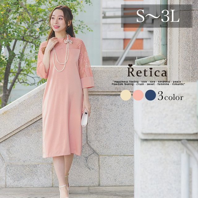 3. ボックスワンピースレース切り替え袖ありパーティードレス (Sサイズ~XXLサイズ)