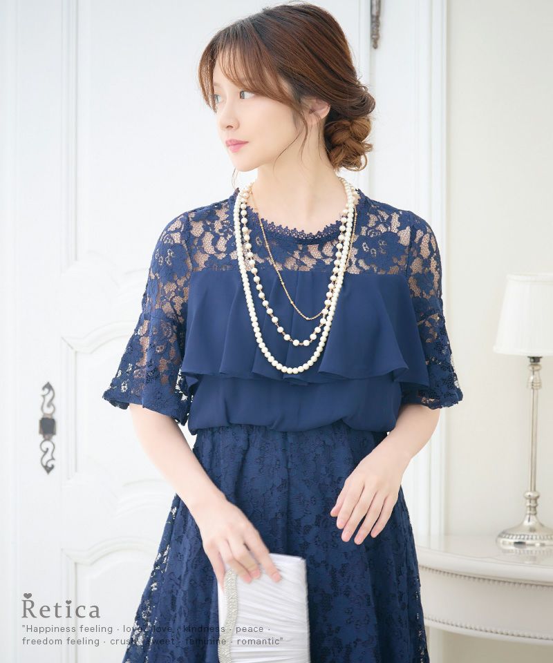5. 総ラッセルレースシフォン切替フィッシュテールロングワンピースパーティードレス (Sサイズ~XLサイズ)(小澤美里)