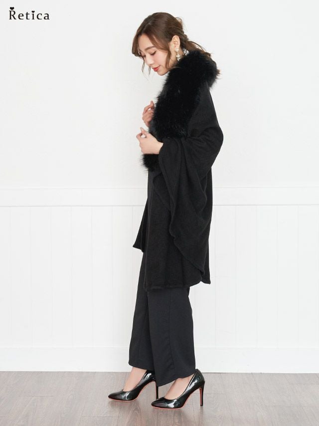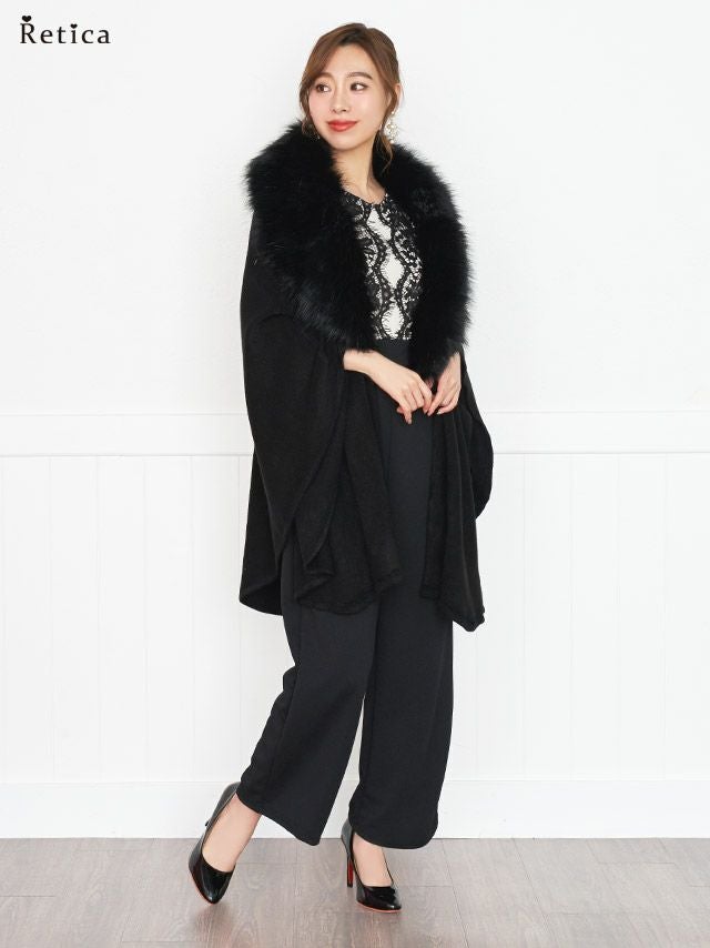 ストールにも!上着としても! ファー付き大判ストール(ブラック)(フリーサイズ)