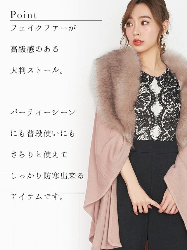 豪華な大判ストール★ ファー付き大判ストール(ピンク)(フリーサイズ)