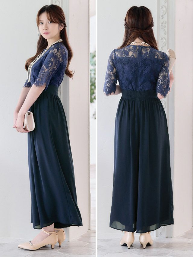 チュールレーストップスウエスト切替シフォンワイドパンツパーティードレスのカラーバリエーション
