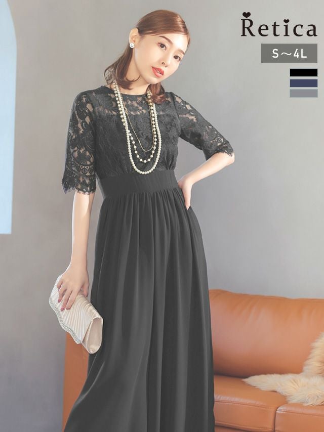 5. [SUPER SALE] チュールレーストップスウエスト切替シフォンワイドパンツパーティードレス (Sサイズ~4Lサイズ) (小澤美里)[Retica/レティカ]
