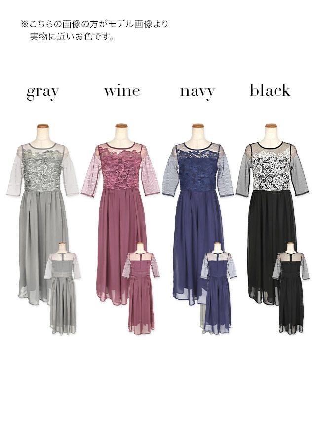 リーフ刺繍ラッセルレース七分袖シフォンワイドパンツパーティードレスのカラーバリエーション画像