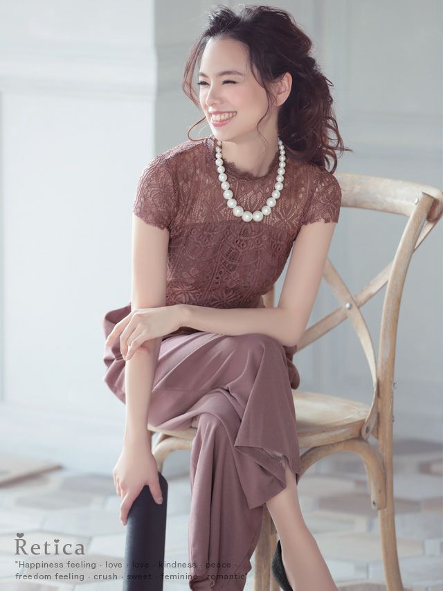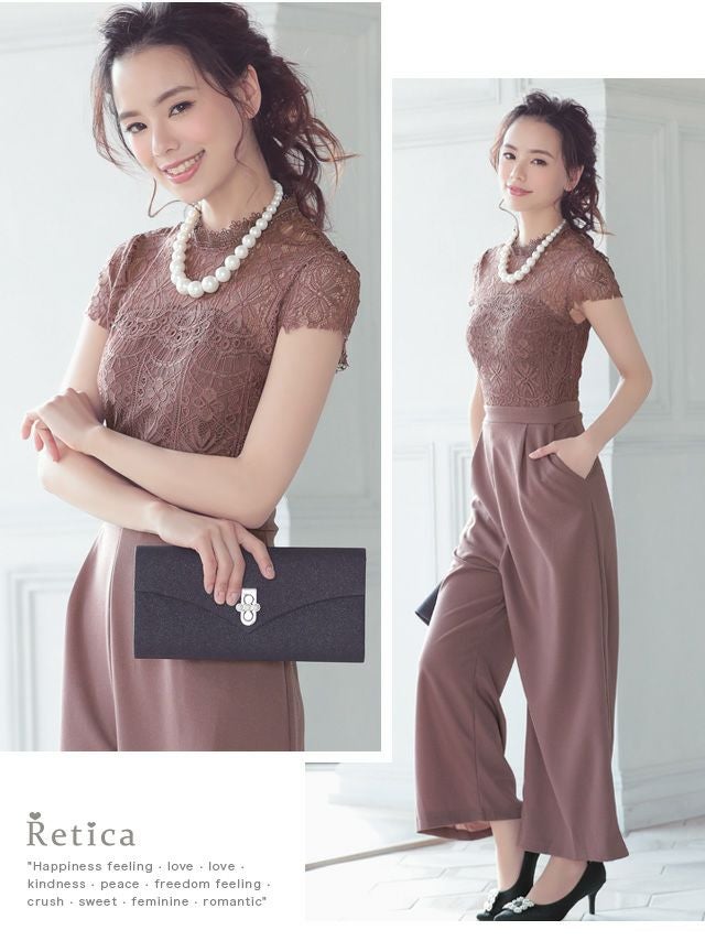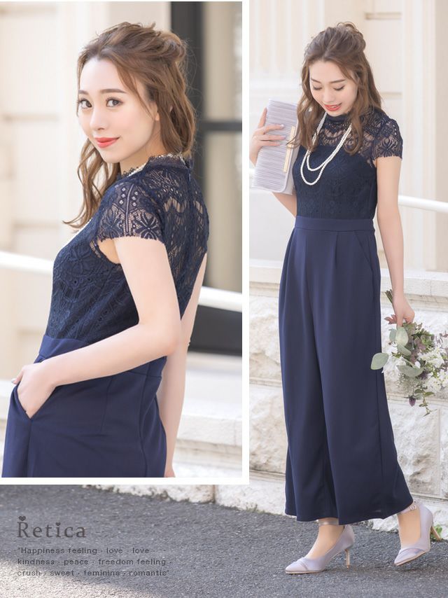 パーティードレス パンツ パンツスタイル刺繍レースデザインパンツドレス