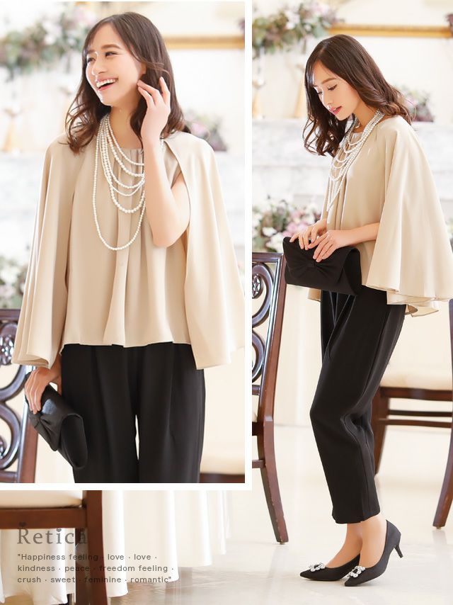 お呼ばれドレス パンツ ケープデザイントップステーパードパンツセットアップパーティードレス