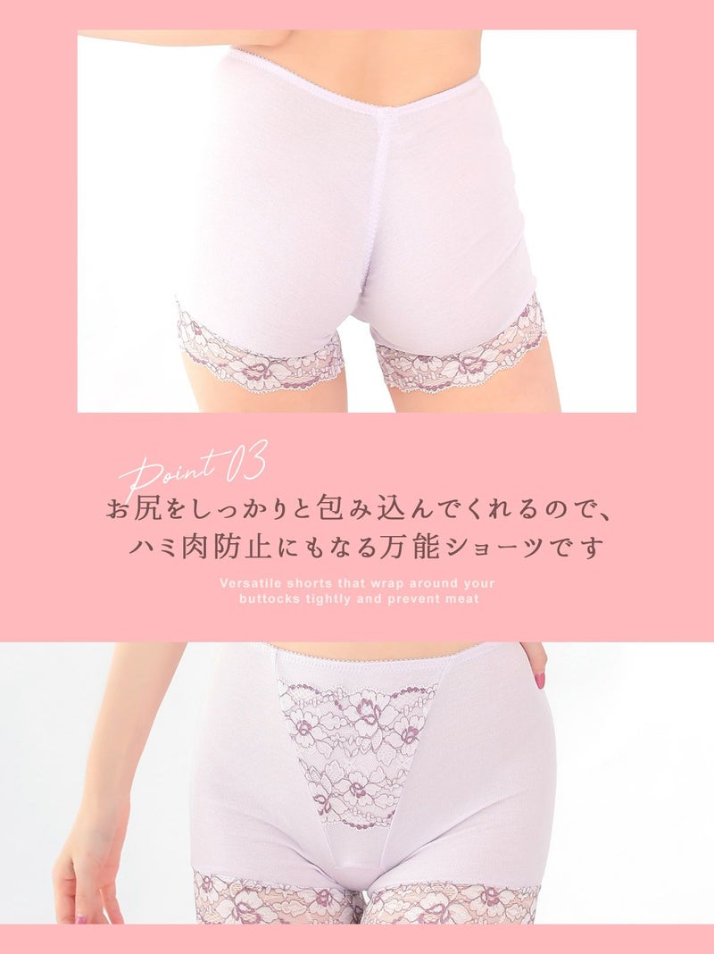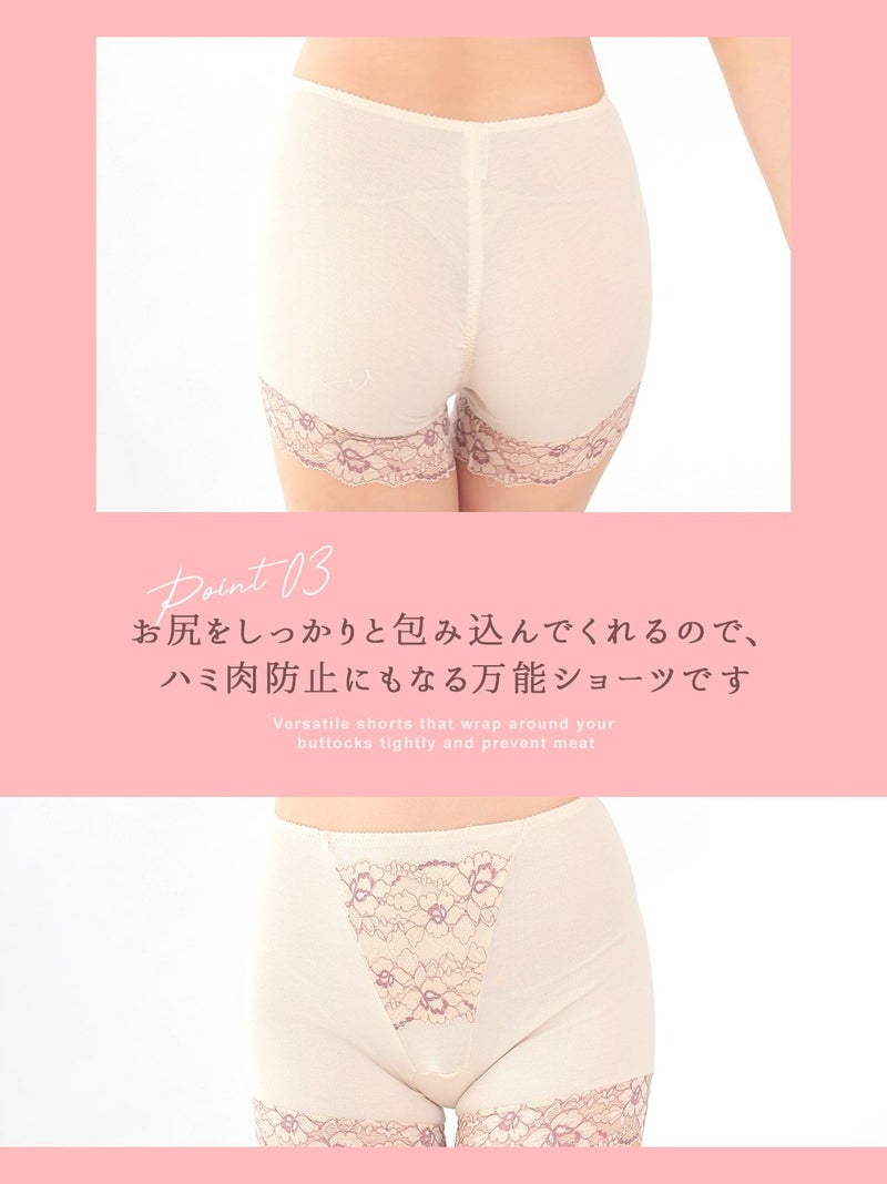 フラワー刺繍デザイン一分丈ショーツのフロントバック画像3