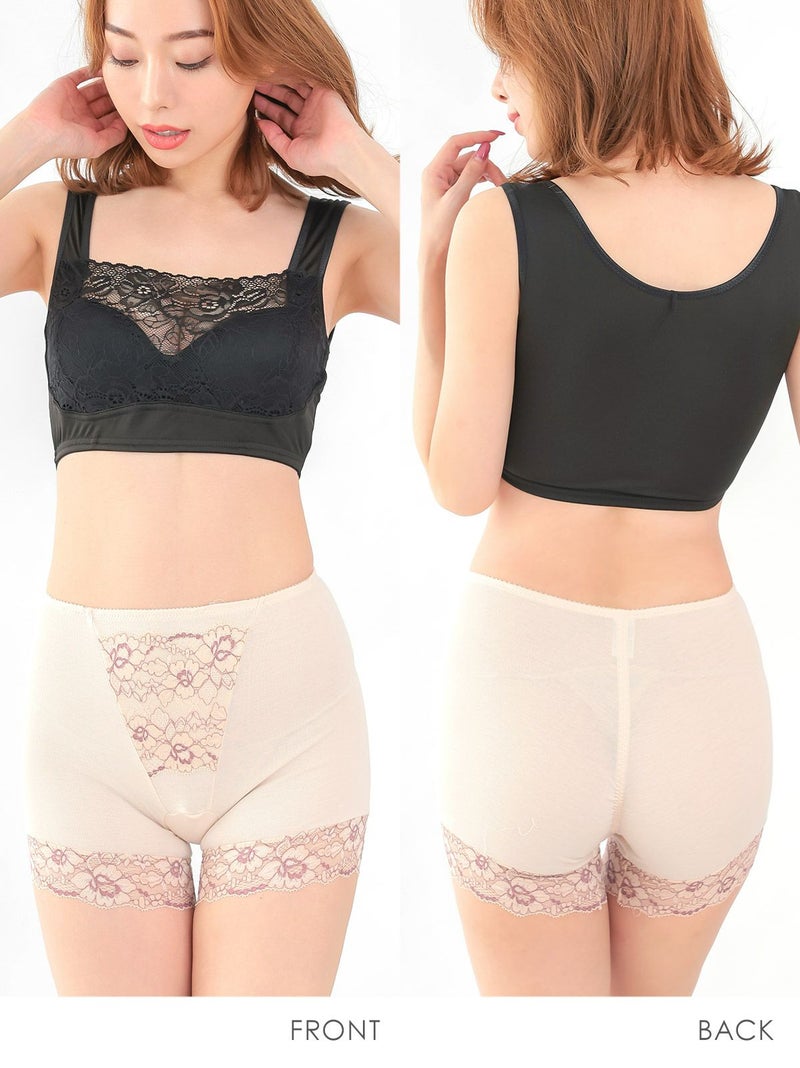 フラワー刺繍デザイン一分丈ショーツのフロントバック画像1