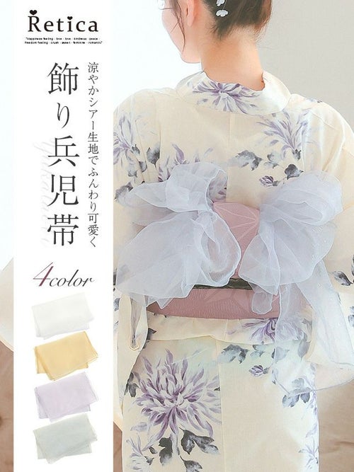 シアー生地でふんわりかわいい♡ シアーラメ生地飾り兵児帯(ホワイト/ベージュ/ラベンダー/パールグレー)