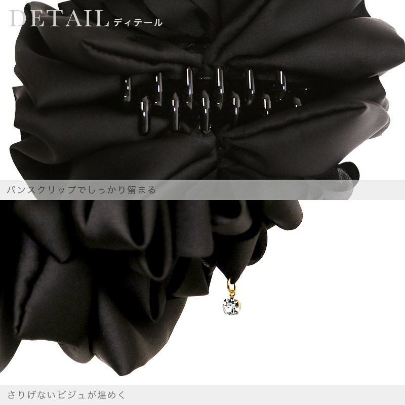 ボリュームフリルビジュー付きバンスクリップヘアアクセサリー(ホワイト/レオパード/ブラック)