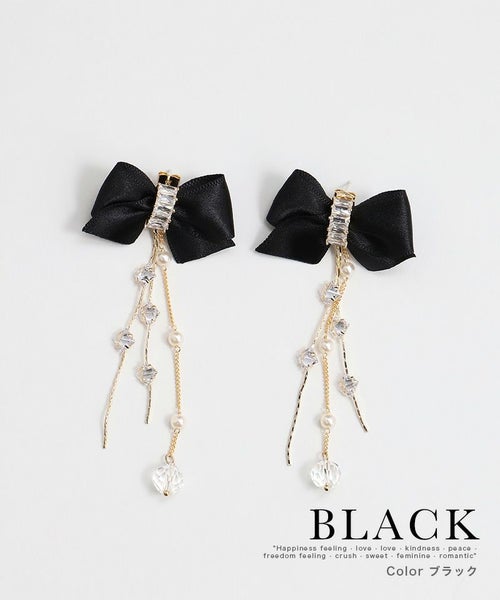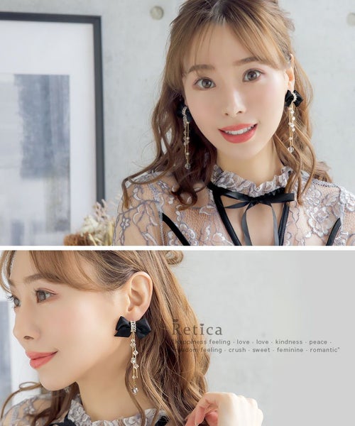 リボンとゆらゆら揺れるビジューデザインが高見栄するピアス♪