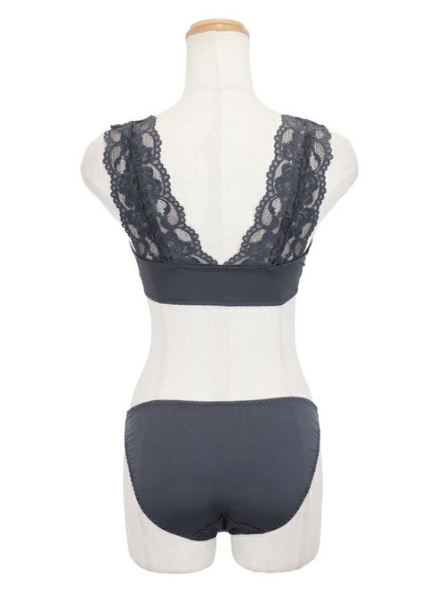 3. ストラップレースフロントホック脇高カップブラジャー&ショーツセット(チャコールグレー)(A~F,65~80)