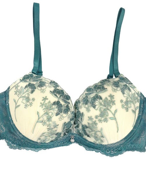 爽やかカラーで大人っぽく♡ クラシカルフラワー刺繍レースカップブラジャー&ショーツセット(フォレストグリーン)(A~F/65~80)