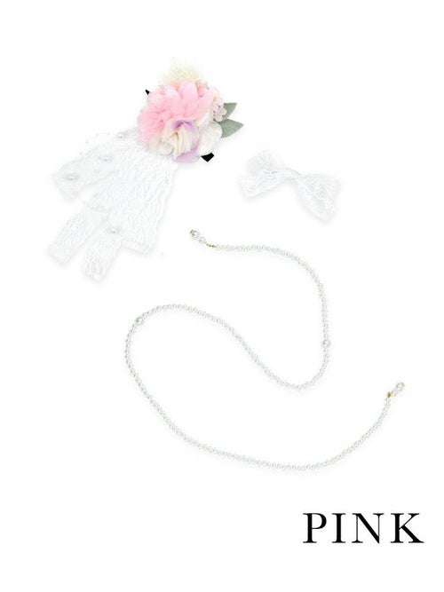 セットのレースリボンとパールの髪飾りを合わせると更に可愛い仕上がりに☆