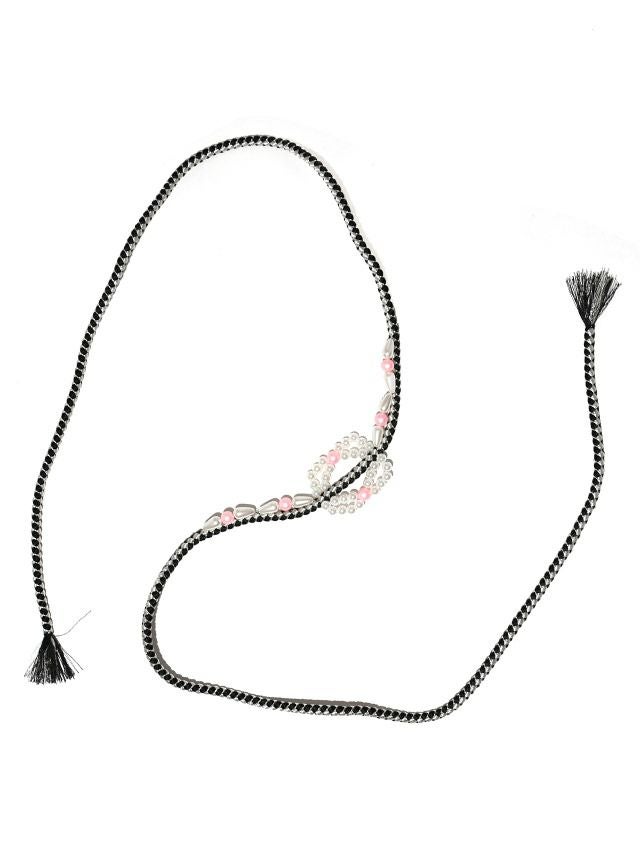 どんな浴衣にも合わせられてアクセントになるビーズが可愛い帯紐 ビーズ編み込み帯紐飾り(ホワイト×パープル/ブラック×シルバー)