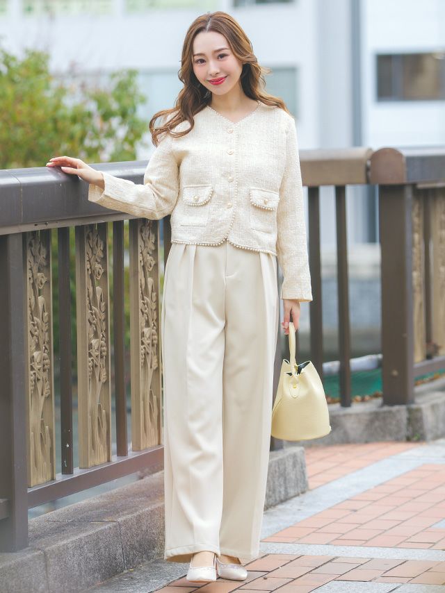 アクセサリーなしでも華やかに♪ [SUPER SALE] パールネックレース袖セットアップパンツパーティードレス (Sサイズ~XXLサイズ)