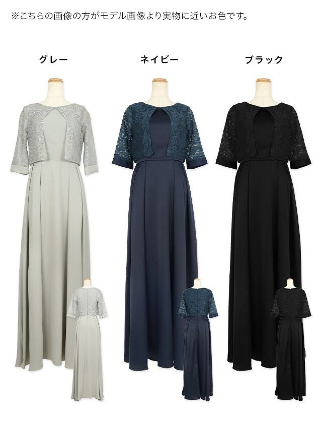 高級感たっぷりな一着♪ レースボレロ風七分袖デザインワンカラーマキシロング丈パーティードレス (XSサイズ~XXXLサイズ)