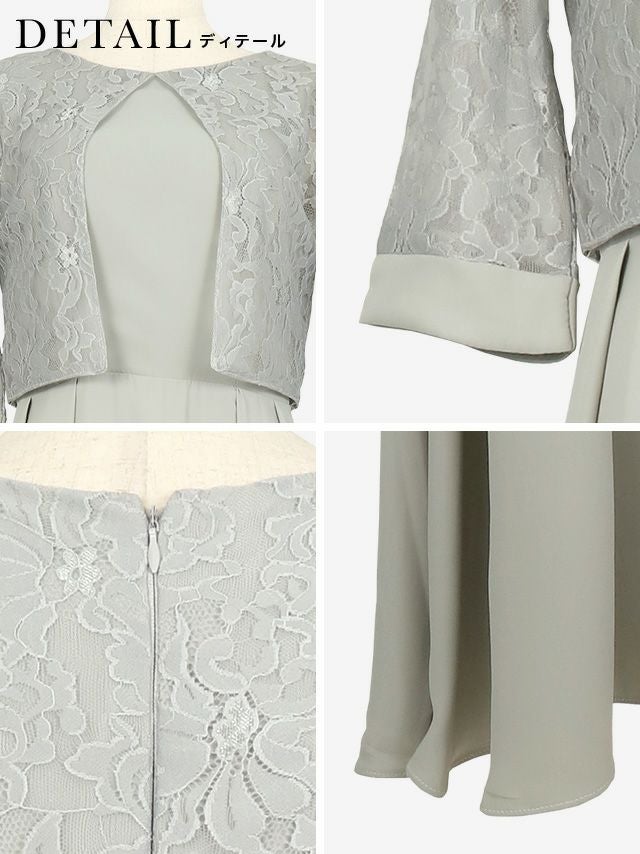 品あるデザイン♪ セットアップ風デザインレース袖ロング丈パーティードレス (XSサイズ~XXXLサイズ)