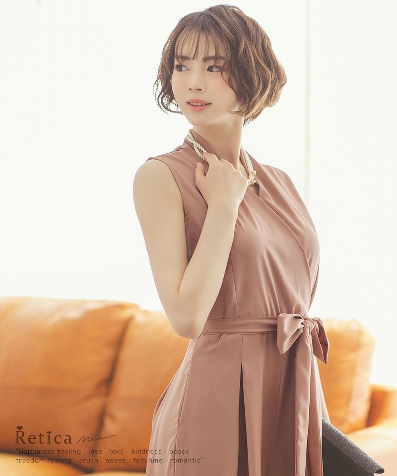 ハイウエストでかっこよく決まる♪ ノースリーブウエストリボンワイドパンツプチプラパーティードレス (Mサイズ~XXLサイズ)