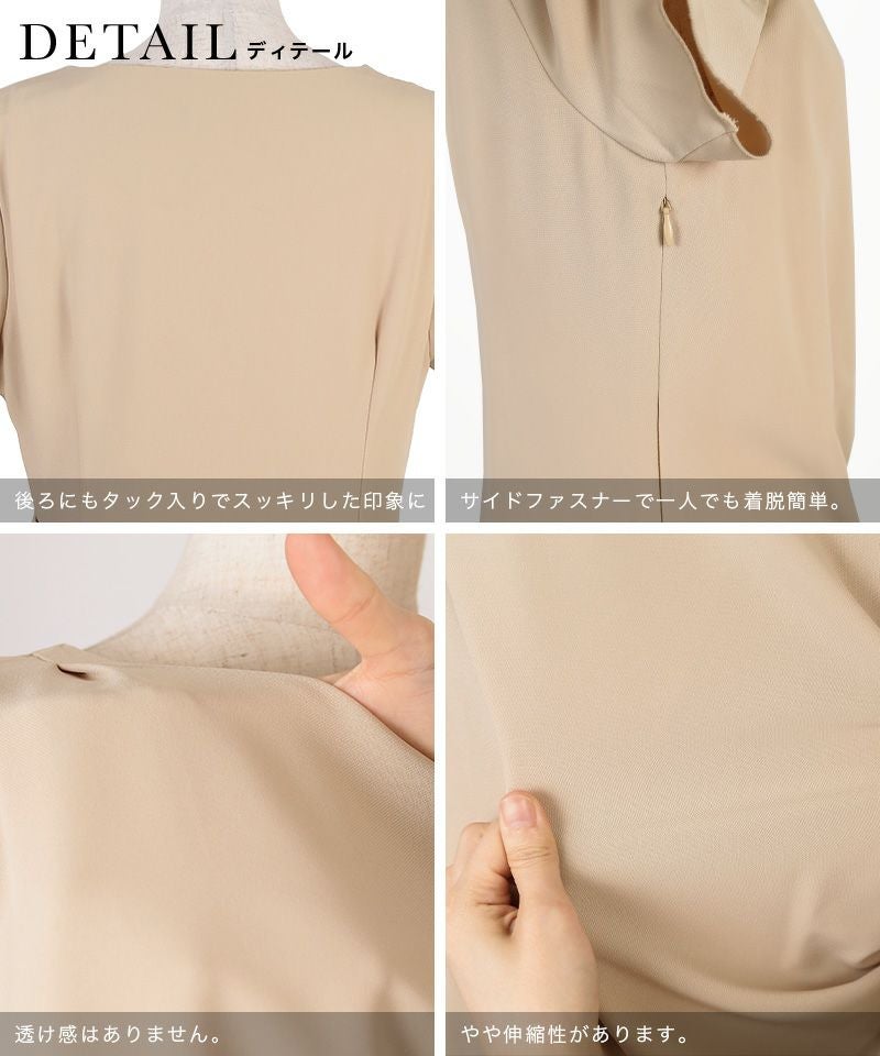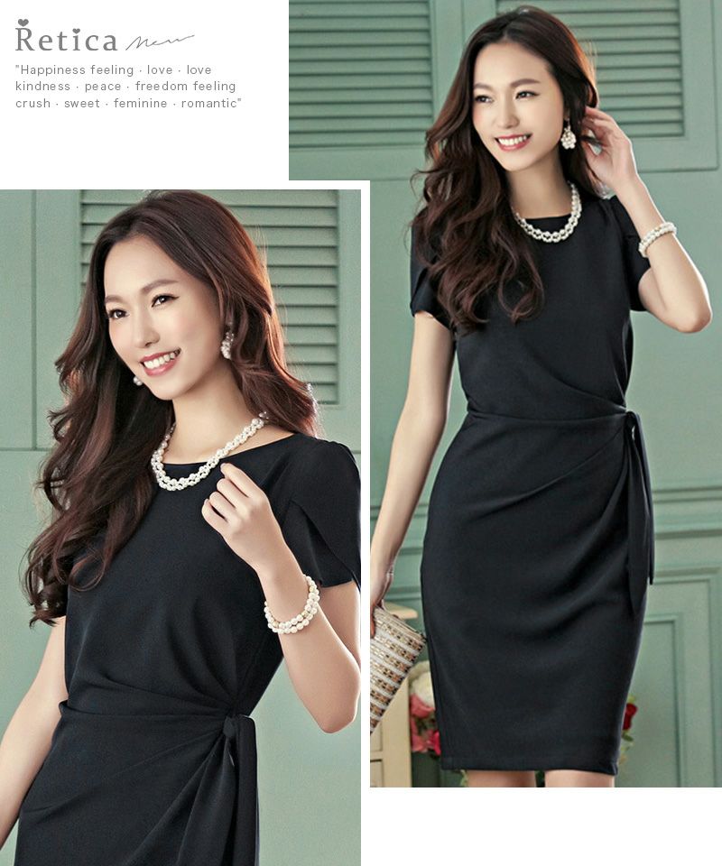 シンプルシルエットが大人のこなれ感♪ ウエストドレープサイドリボンワンカラーミディプチプラパーティードレス (Sサイズ~XXLサイズ)