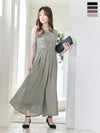 シフォン素材で柔らかな印象に♪ 半袖フリルデザインウエスト切替ロングパーティードレス (Sサイズ~XXLサイズ)