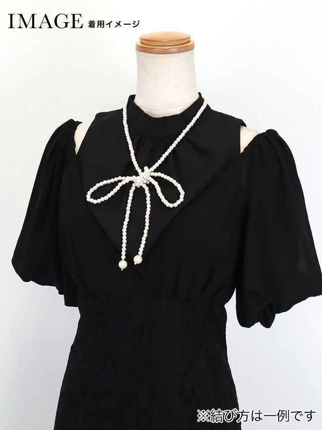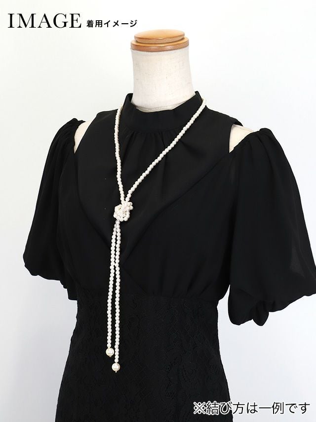 パールボタンで華やかさをプラス♪ [SUPER SALE] 襟デザインレース長袖パールボタンミモレ丈ワンピースドレス (Sサイズ~4Lサイズ)