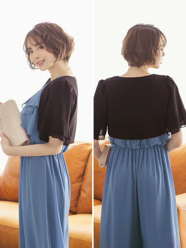 シンプルな上品デザイン♪ [SUPER SALE] 切り替えティアードスリーブ半袖ミニ丈ボレロ (M/Lサイズ)