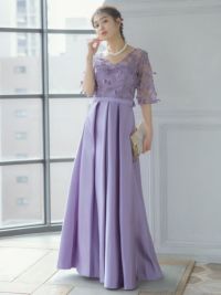 華やかなシーンにぴったり♪ [SALE] 立体刺繍レースバックリボン七分袖ロングスカートパーティードレス (XSサイズ~4Lサイズ)