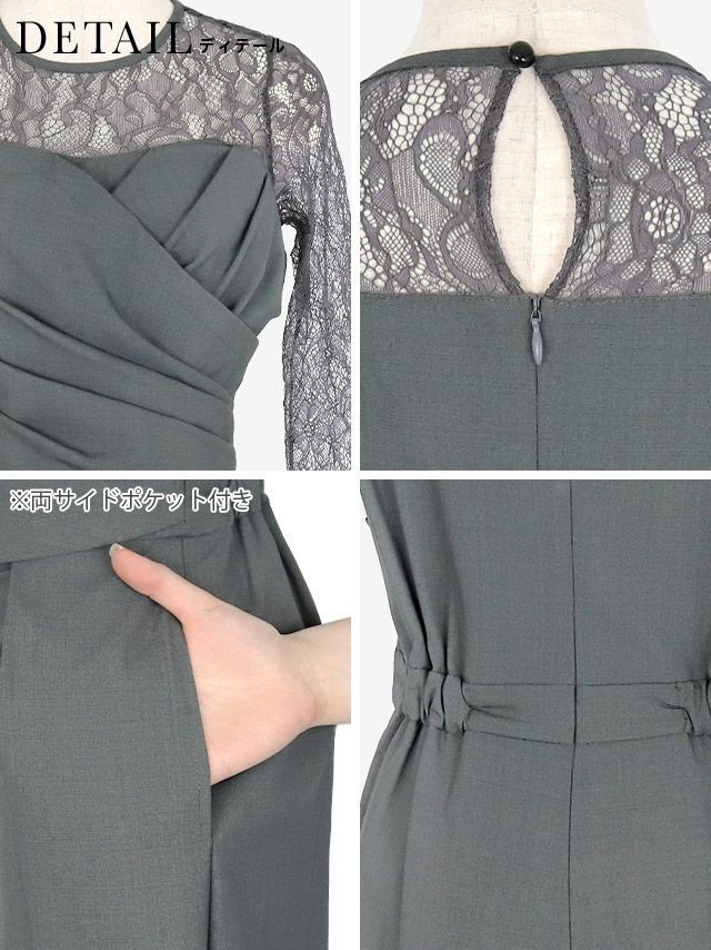 クルーネックレーススリーブカシュクール風オールインワンパーティードレスのイメージ画像2