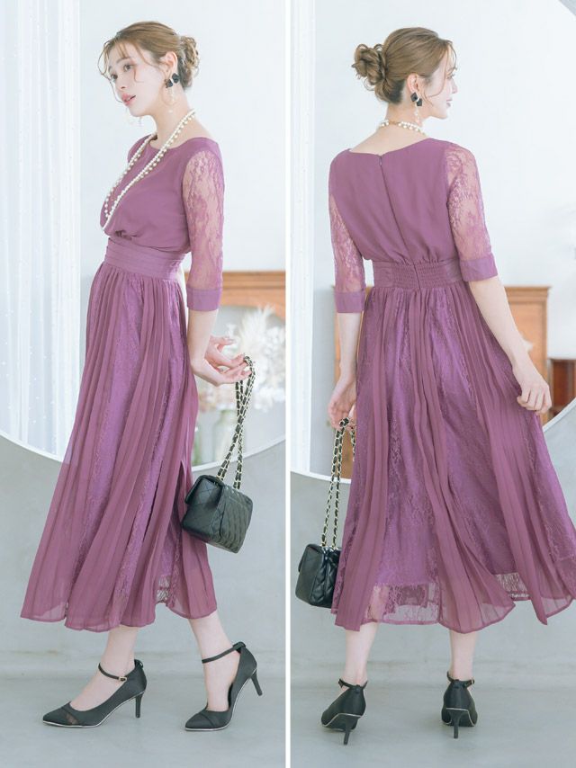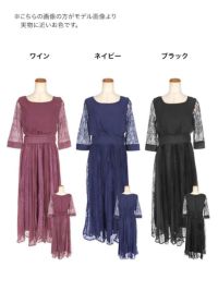 [SALE] ワンカラーレース五分袖ワイドパンツプチプラパーティードレス (Sサイズ~3Lサイズ)