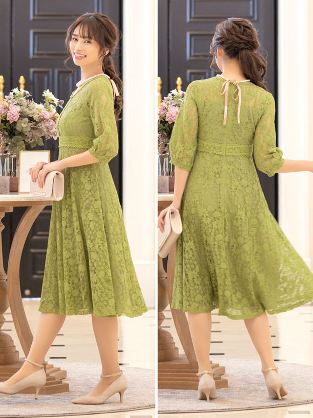 フラワーレースパイピングデザイン五部袖パーティードレスのカラーバリエーション