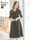 総レースが目を惹く華やかドレス♪ [SALE] Vネックフレア総レースワンピースパーティードレス (Sサイズ~3Lサイズ)