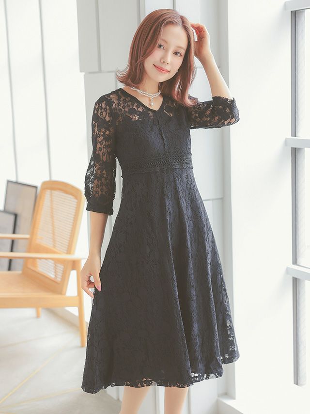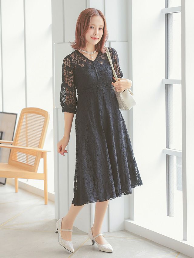 3. [SALE] Vネックフレア総レースワンピースパーティードレス (Sサイズ~3Lサイズ)