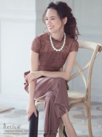 ハイネックレース切替フレンチスリーブパンツパーティードレスのスペック表
