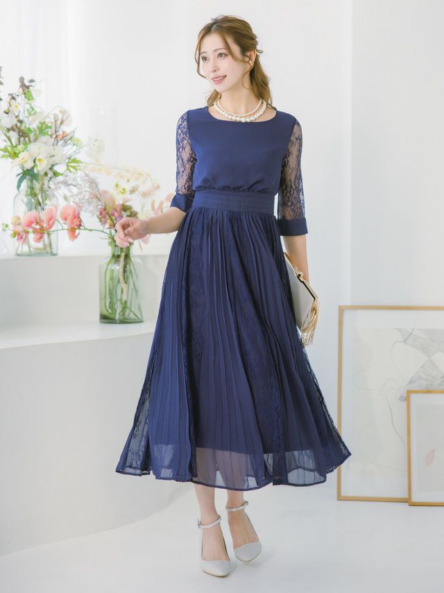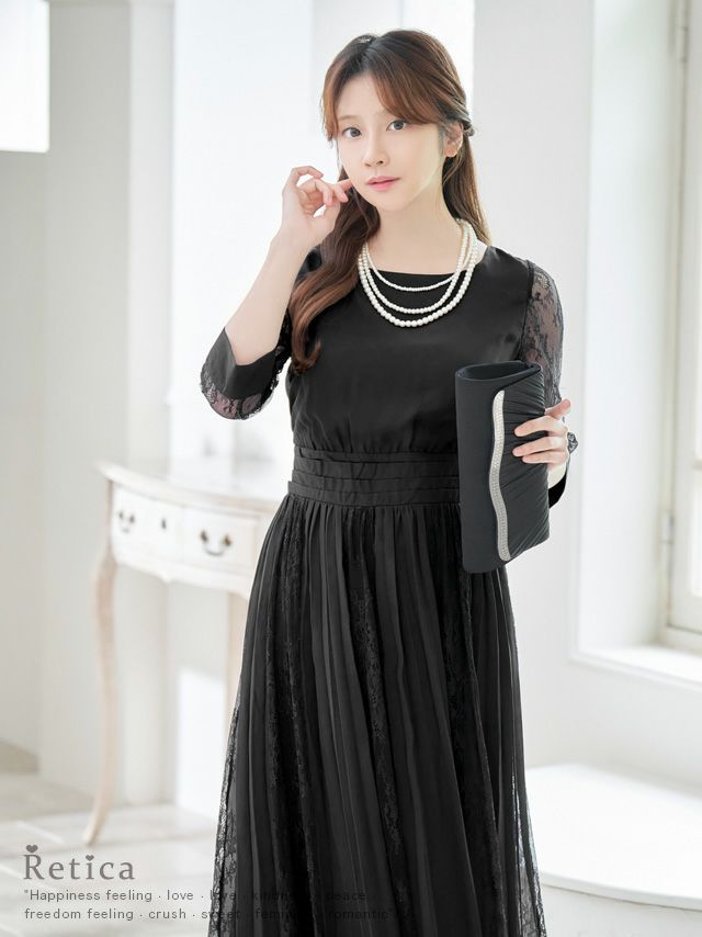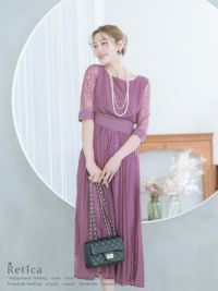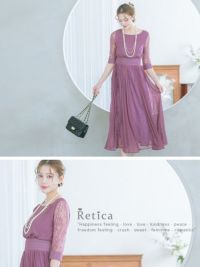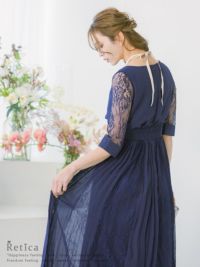 3. [SALE] チュールレーススリーブウエスト切替ドレープシフォンAラインロングパーティーワンピースドレス (Sサイズ~4Lサイズ) (小澤美里)[Retica/レティカ]