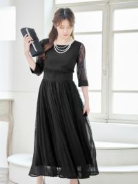 チュールレーススリーブウエスト切替ドレープシフォンAラインロングパーティーワンピースドレスのスペック表