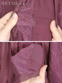 チュールレーススリーブウエスト切替ドレープシフォンAラインロングパーティーワンピースドレスのイメージ画像3