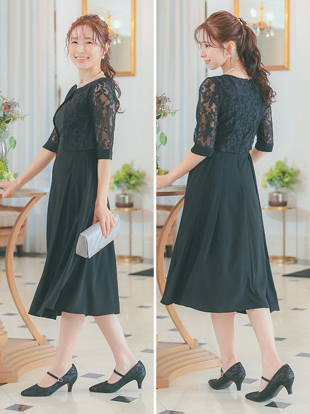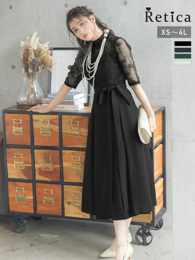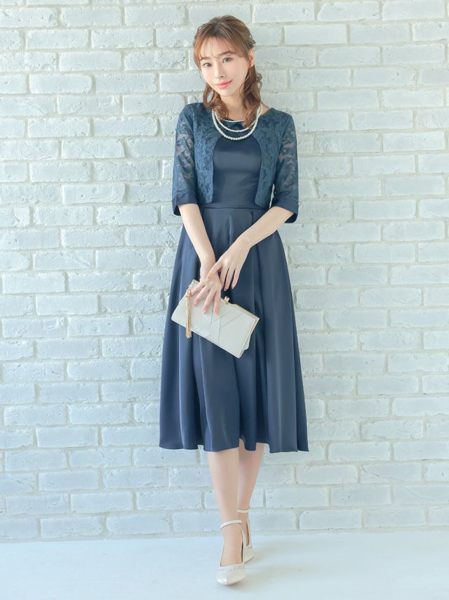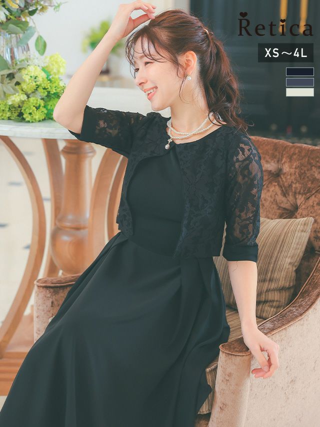 他の画像を見る 12/11再入荷★大人の気品漂う一着♪ [SALE] レース切替ボレロ風ミモレ丈ワンピースパーティードレス (XSサイズ~4Lサイズ) 通常価格 ¥ 12,100 のところ ¥ 10,780 税込 カートに入れる