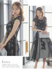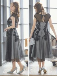 3. [SALE] スパンコール付き立体刺繍フレンチスリーブミモレ丈ワンピースパーティードレス (XSサイズ~4Lサイズ)