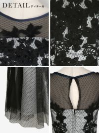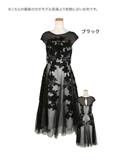 チュール刺繍フラワーロングパーティードレス (XSサイズ~4Lサイズ)<高身長サイズあり>