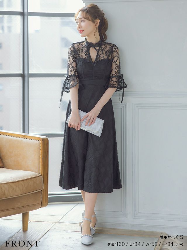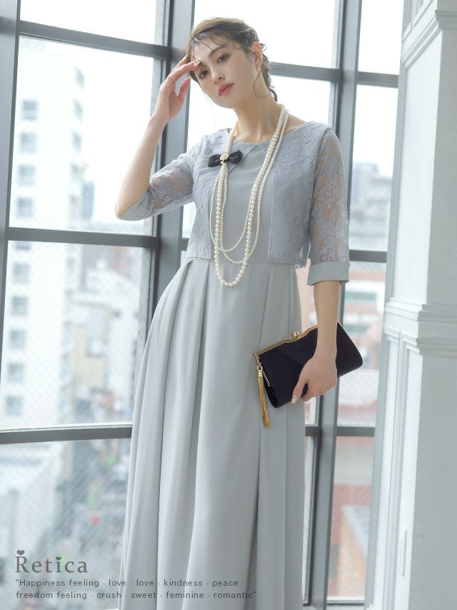 他の画像を見る 10/28再入荷★品格をまとう、レース×リボンの美シルエット♪ [SALE] ハイネックレース七分袖ミモレ丈パーティードレス (XSサイズ~4Lサイズ) 通常価格 ¥ 13,200 のところ ¥ 10,780 税込 カートに入れる