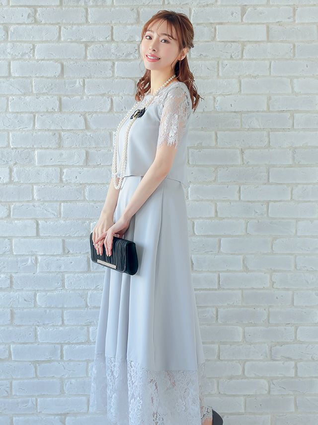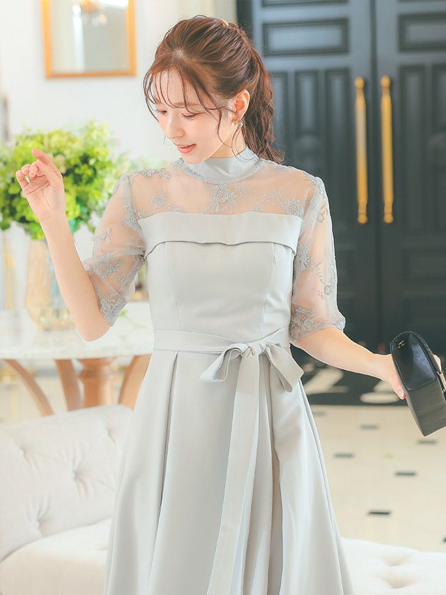 他の画像を見る レースとリボンで魅せる、クラシカルな華やぎ。 [SALE] ビスチェ風デザインハイネックレース五分袖ミモレ丈パーティードレス (XSサイズ~4Lサイズ) 通常価格 ¥ 13,200 のところ ¥ 10,780 税込 カートに入れる