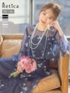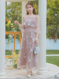 5. フラワー刺繍デコルテシースルーベルスリーブ袖ロングスカートパーティードレス (XSサイズ~4Lサイズ)<高身長サイズあり>