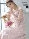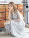 上品ガーリーを彩る♪ フラワー刺繍デコルテシースルーベルスリーブ袖ロングスカートパーティードレス (XSサイズ~4Lサイズ)<高身長サイズあり>