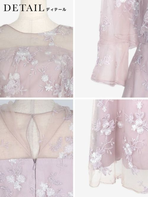 フラワー刺繍デコルテシースルーベルスリーブ袖ロングスカートパーティードレスの商品詳細2