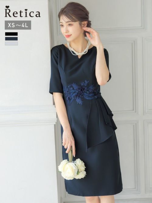 4. [SALE] 五分袖立体フラワーレースミディアムパーティードレス (XSサイズ~4Lサイズ)